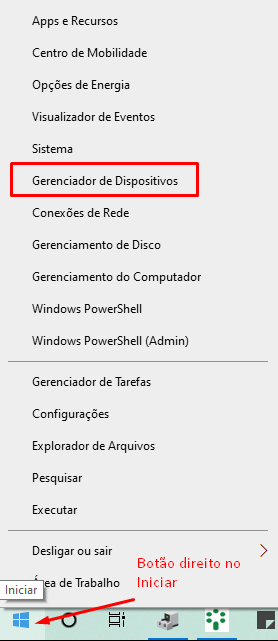 Abrir gerenciador de dispositivos do Windows: