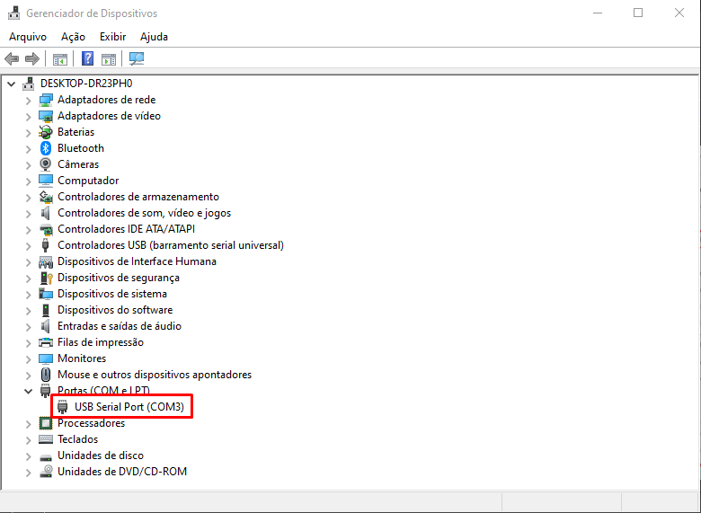 Inserir porta COM como o valor visto na etapa 2 do processo 3;