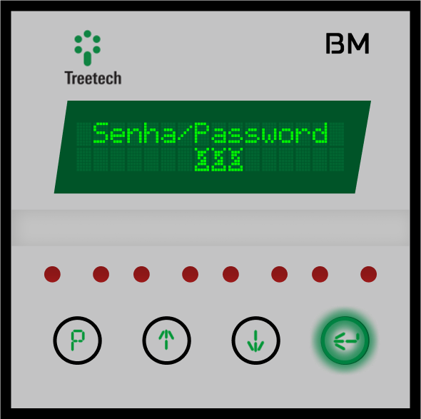 Após 5 segundos, será mostrada a tela de senha de acesso (password). Utilizar as teclas